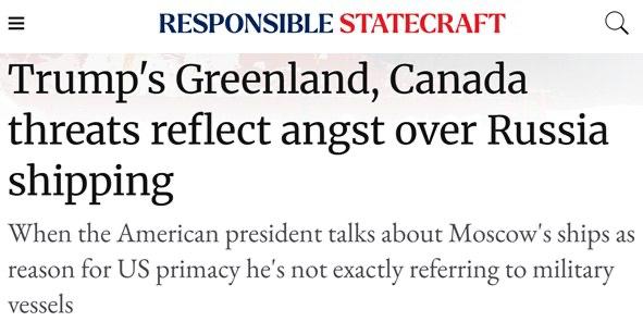 «Глядя на бой Трампа за Гренландию, необходимо чётко понимать, что, когда американский президент говорит о российских кораблях вблизи Гренландии, он имеет в виду те, что с грузом, а не только те, что с пушками», — подчёркивает Responsible Statecraft