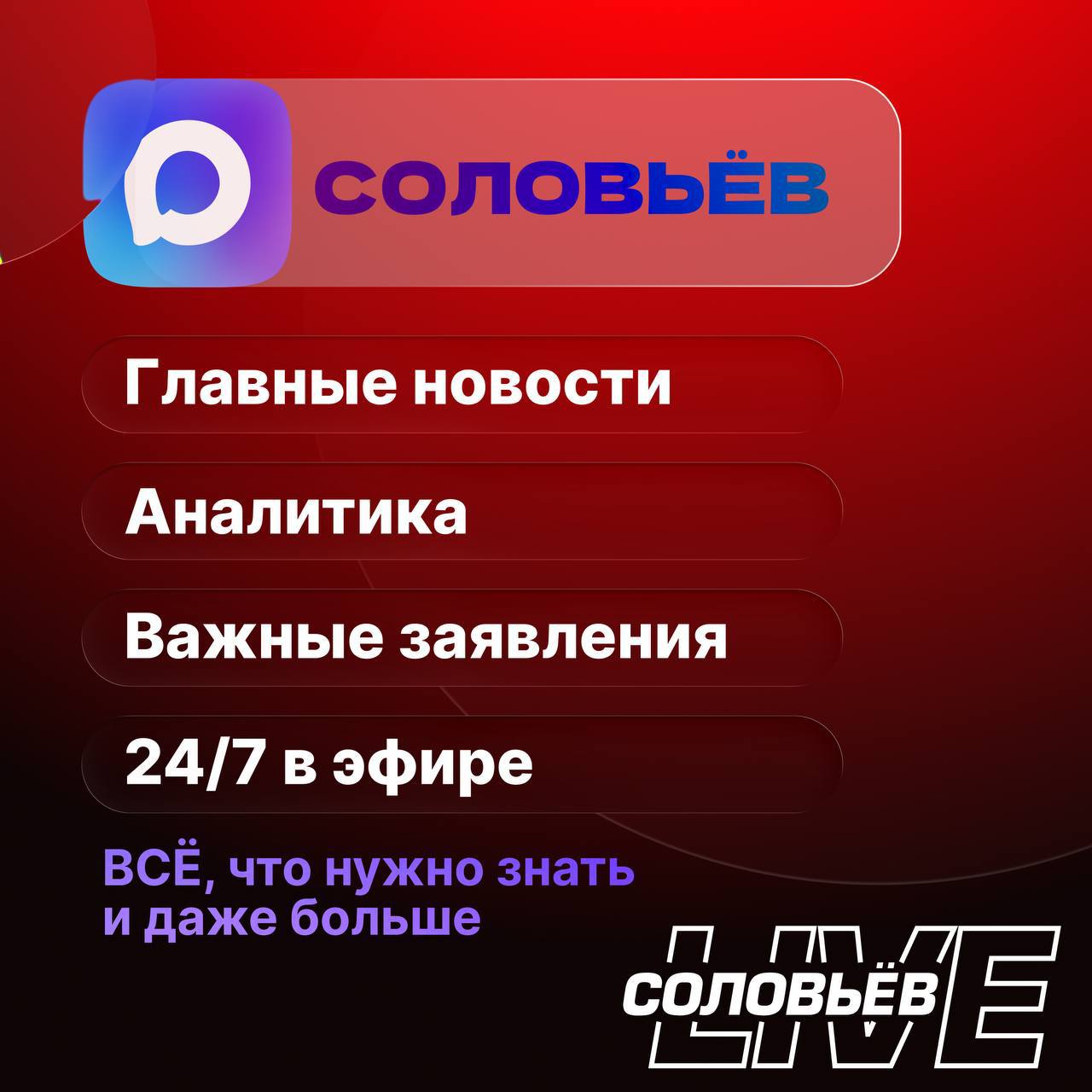 Нас 400 тысяч! Без пауз и выходных: канал Владимира Соловьёва в Mах работает 24/7. Главные новости, важные заявления и эксклюзивы в реальном времени. Присоединяйся!