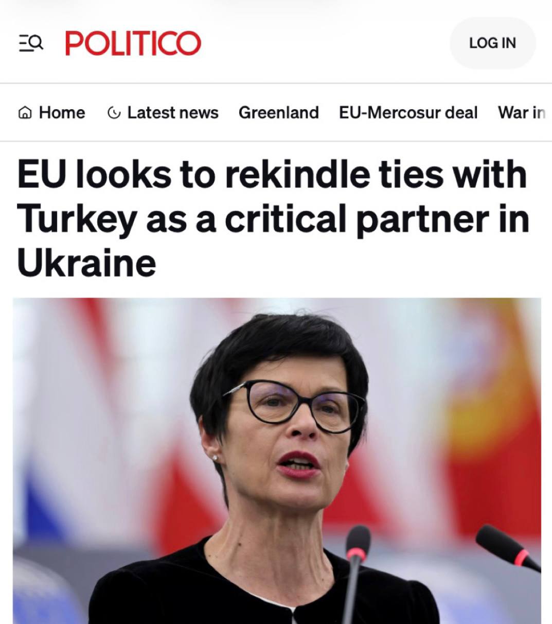 «ЕС пересматривает отношения с Турцией, видя в ней ключевого партнёра для послевоенного порядка в Украине особенно в качестве миротворца и регионального посредника в Черноморском регионе. Комиссар по расширению ЕС Марта Кос посетила Анкару, чтобы возобновить диалог и она подчеркнула, что мир в Украине изменит реалии Европы, и Турция станет очень важным союзником.
