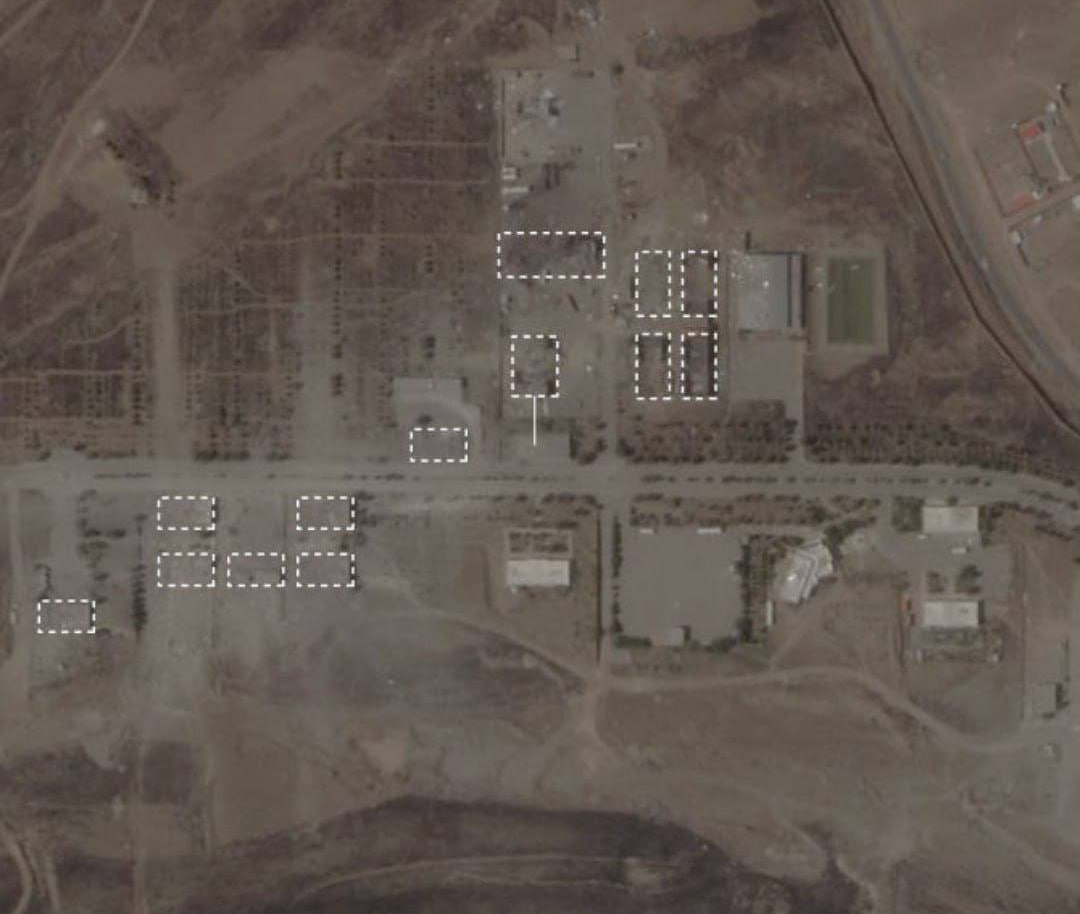 Издание представило три снимка со спутника — до ударов Израиля от 4 июня 2025 года, после ударов (29 июня) и после ремонта — датой указано 11 ноября. На первом фото объекты на месте, а на втором их практически нет. На третьем фото они приведены почти к тому же виду, в каком были изначально.