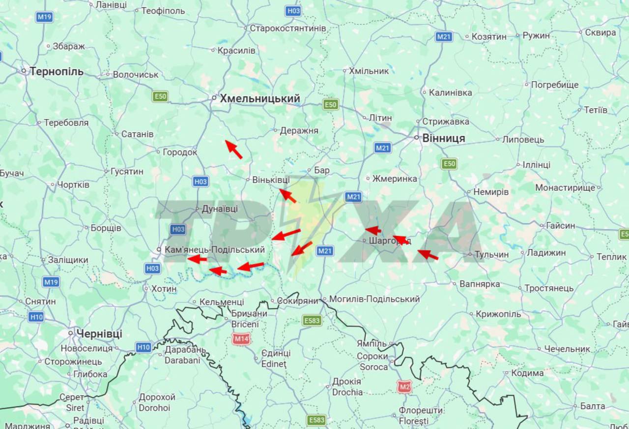 8 ракет над Черновицкой областью, направляющихся в Ивано-Франковскую область.