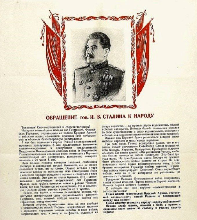 1 "Вековая борьба славянских народов за своё существование и свою независимость окончилась победой над немецкими захватчиками и немецкой тиранией".