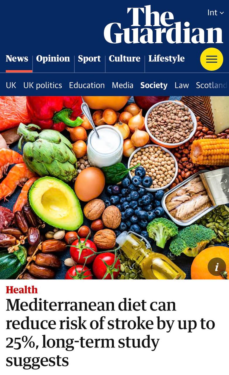 «Средиземноморская диета может снизить риск инсульта до 25%»: Большинство случаев инсульта можно предотвратить, просто изменив схему питания.