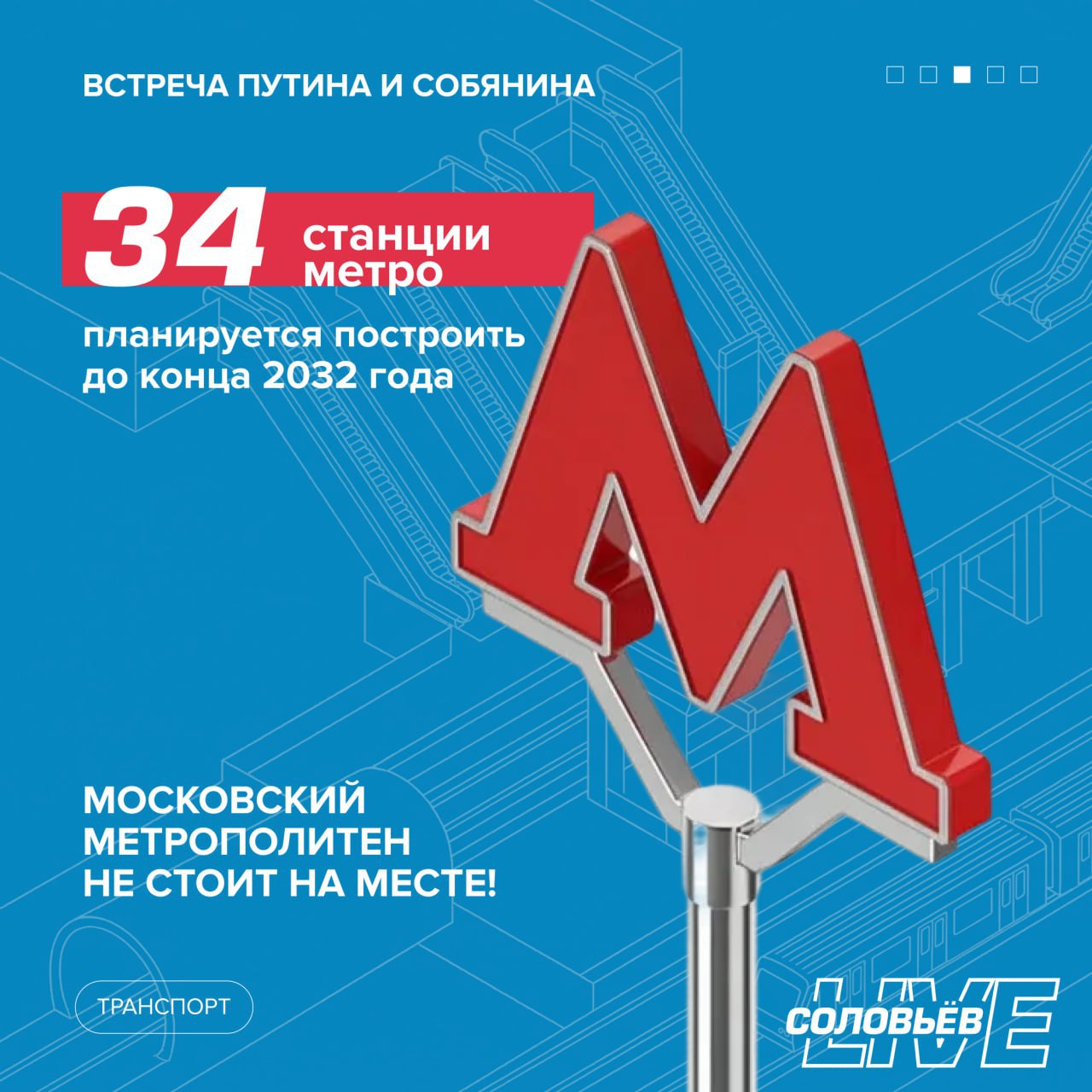 «В 2025-м мы проделали огромную работу по развитию транспортной системы столицы. В частности, завершили обновление подвижного состава на всех четырёх диаметрах, закончили основной участок Троицкой линии. В этом году откроем первые станции Рублёво-Архангельской ветки, продолжим строить Бирюлёвскую линию, а также станции "Гольяново" и "Достоевская". Наметили продление Сокольнической и Филёвской линий», — написал Сергей Собянин в своём блоге в Max после встречи с президентом.