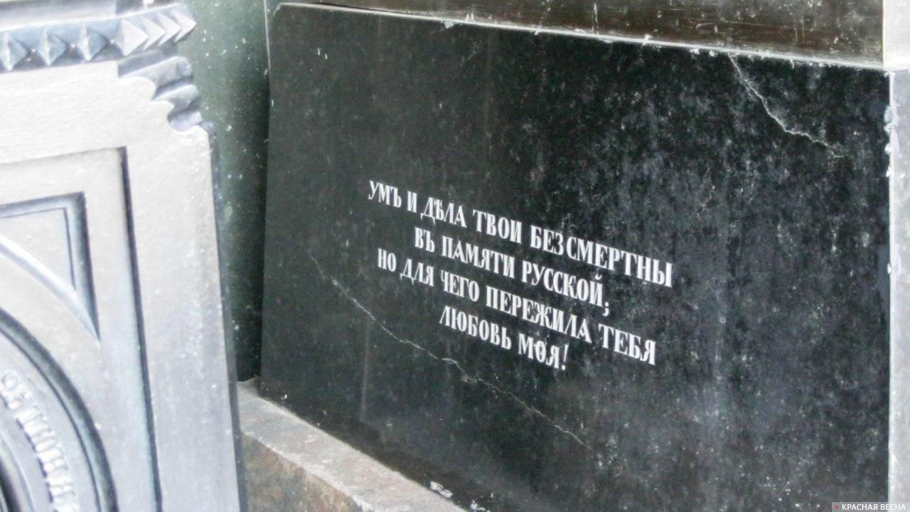 На месте его могилы Нина Чавчавадзе установила памятник, на котором было написано: «Ум и дела твои бессмертны в памяти русской, но для чего пережила тебя любовь моя!».