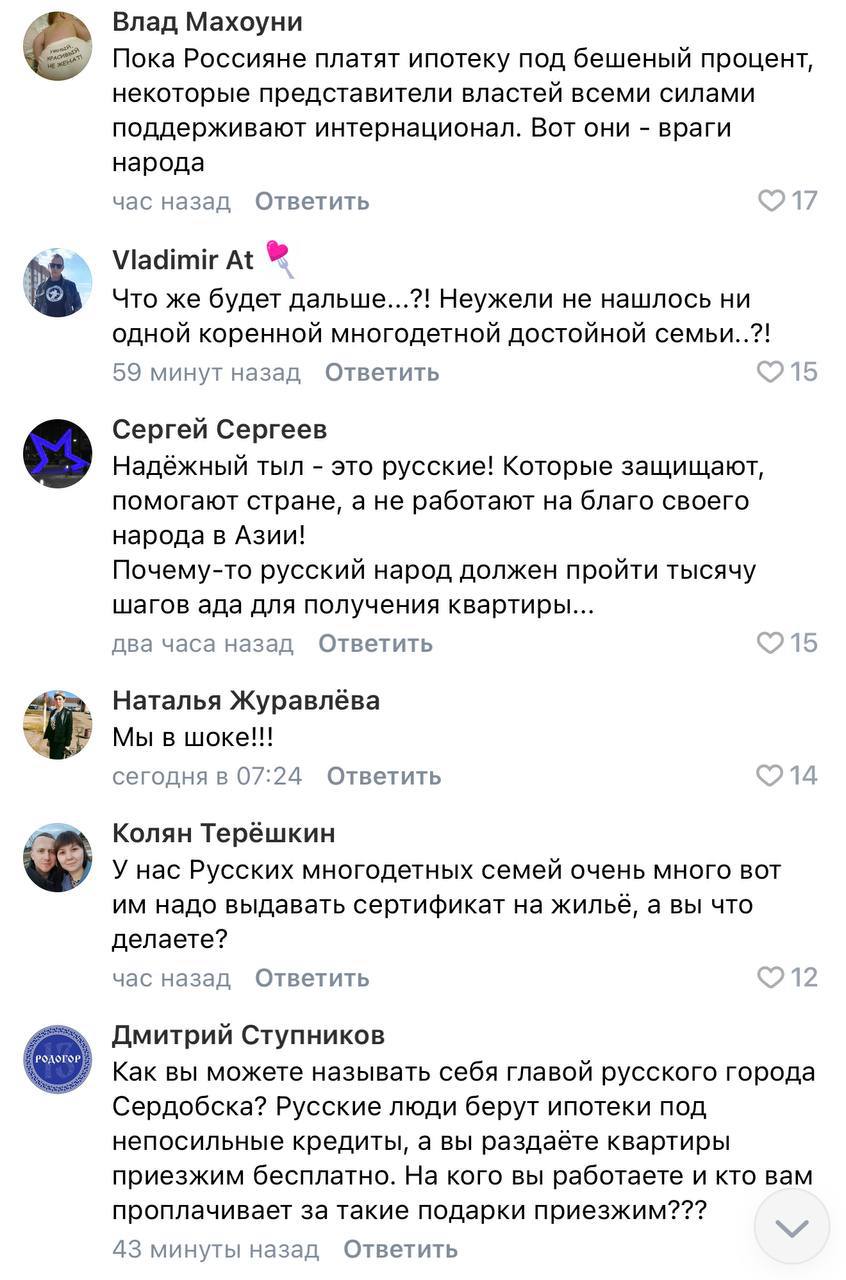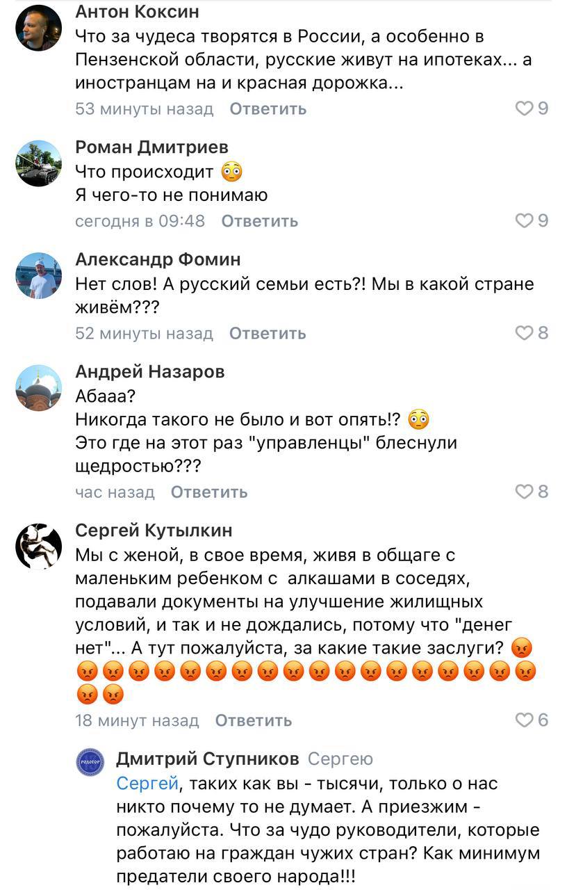 Однако это вызвало шквал недовольства у местных жителей. Люди недовольны тем, что им приходится платить ипотеку по 30 лет, а новые граждане РФ получают жилье бесплатно.