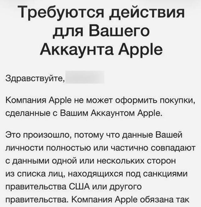 Apple может заблокировать аккаунты россиян, чьи данные полностью или частично совпадают с людьми (например, тезки-однофамильцы), которые попали в списки санкций США и ЕС. Пользователи массово жалуются, что их учетные записи удаляются.