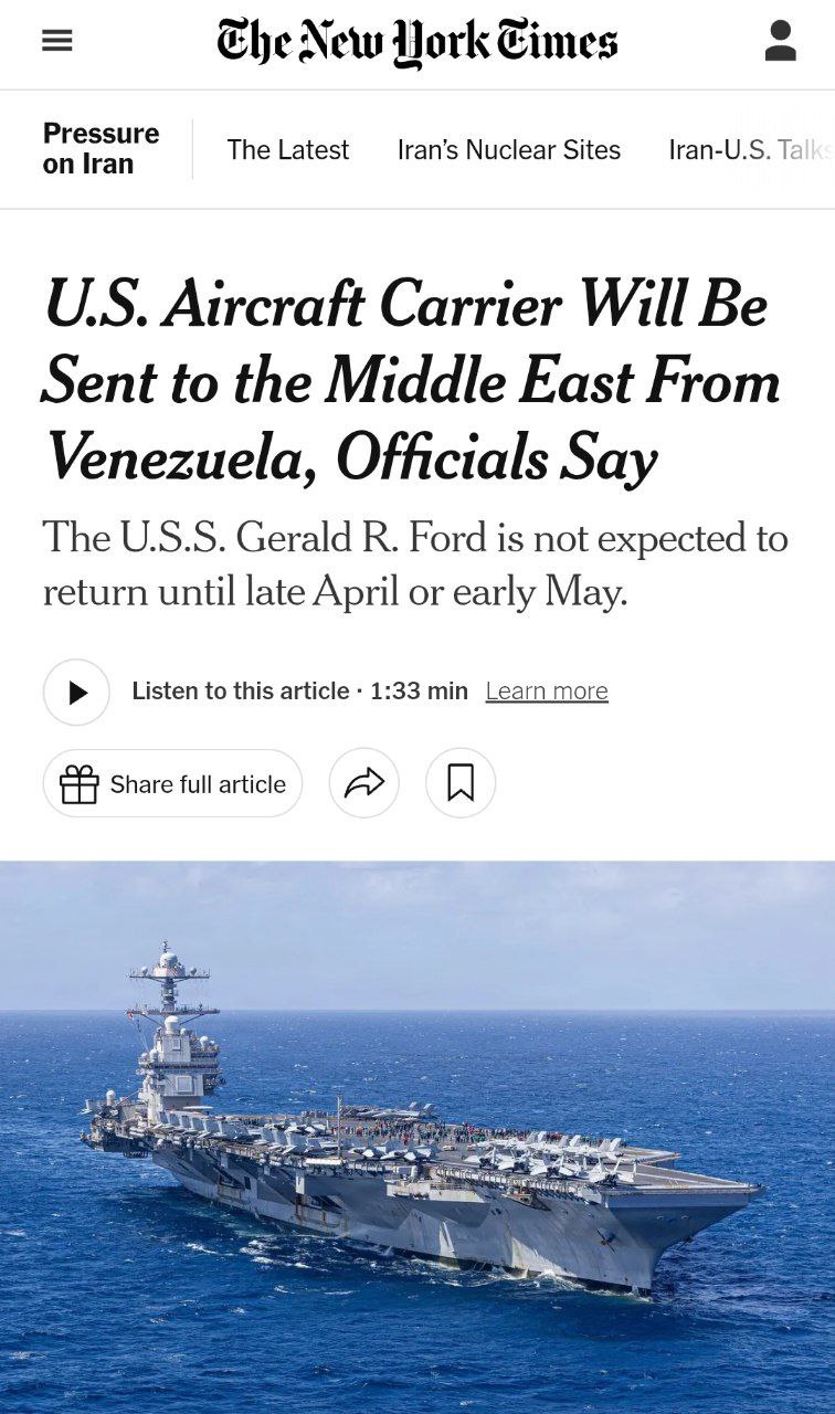 США отправляют авианосец Gerald R. Ford на Ближний Восток, сообщает The New York Times.