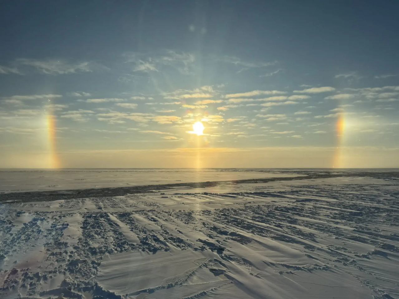 С борта ледокольного буксира «Юрибей» запечатлели редкое природное явление — гало над Обской губой Карского моря.