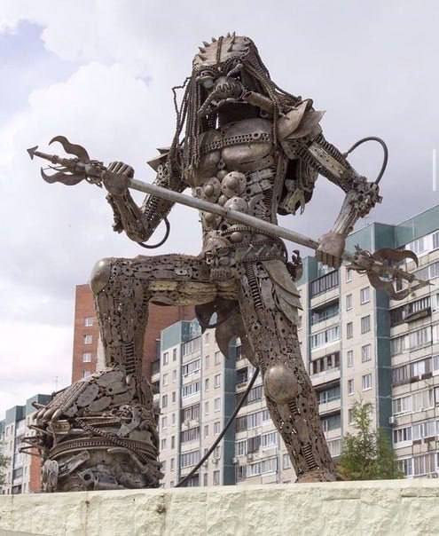 «Хищник» стоит у бывшего ночного клуба в Клочковом переулке уже больше десяти лет — это неформальный арт-объект, который друзья владельца сварили из металлолома и запчастей, и людям он в целом нравится. Городские ресурсы уже давно называют его неформальной достопримечательностью Петербурга: он отмечен на картах, попадает в подборки необычных мест, с ним охотно фотографируются.