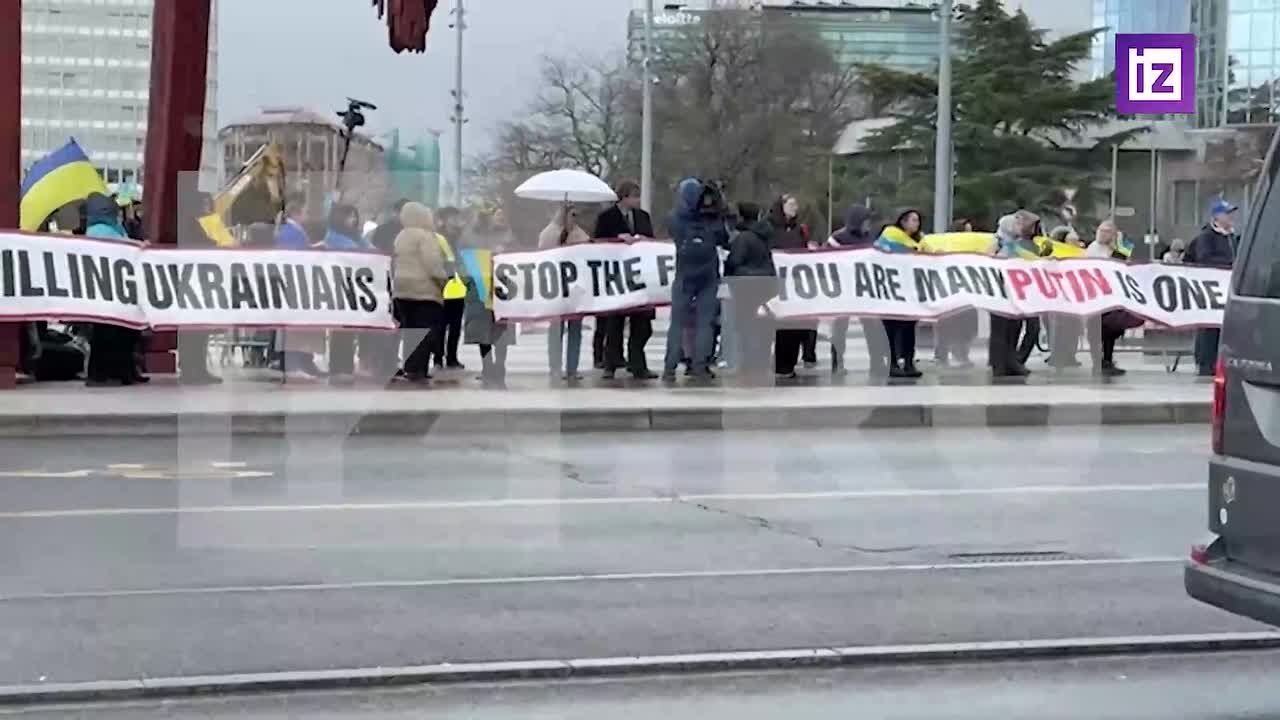 Кадры протестующих украинцев в Женеве показал корреспондент "Известий" Игорь Балдин.