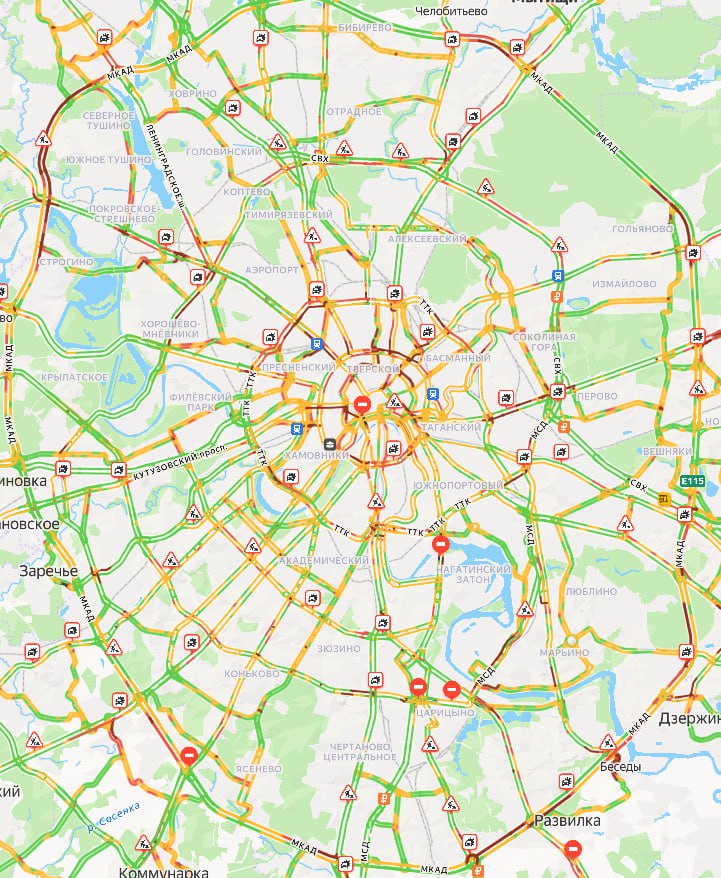 Пробки в Москве уже достигли 9 баллов на фоне рекордного снегопада.