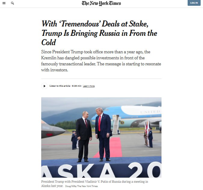 Пока официальные санкции сохраняются, за кулисами уже выстраиваются новые экономические связи. The New York Times утверждает, что американский инвестор, связанный с окружением Дональда Трампа, уже заключил соглашение с российской энергетической компанией по проекту на Аляске. Этот шаг может стать сигналом возвращения России в западную деловую орбиту.