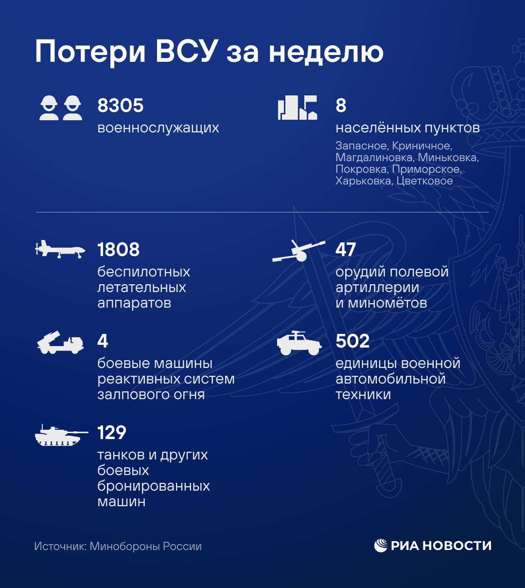 Главное о потерях ВСУ за последние 7 дней – в инфографике РИА Новости.