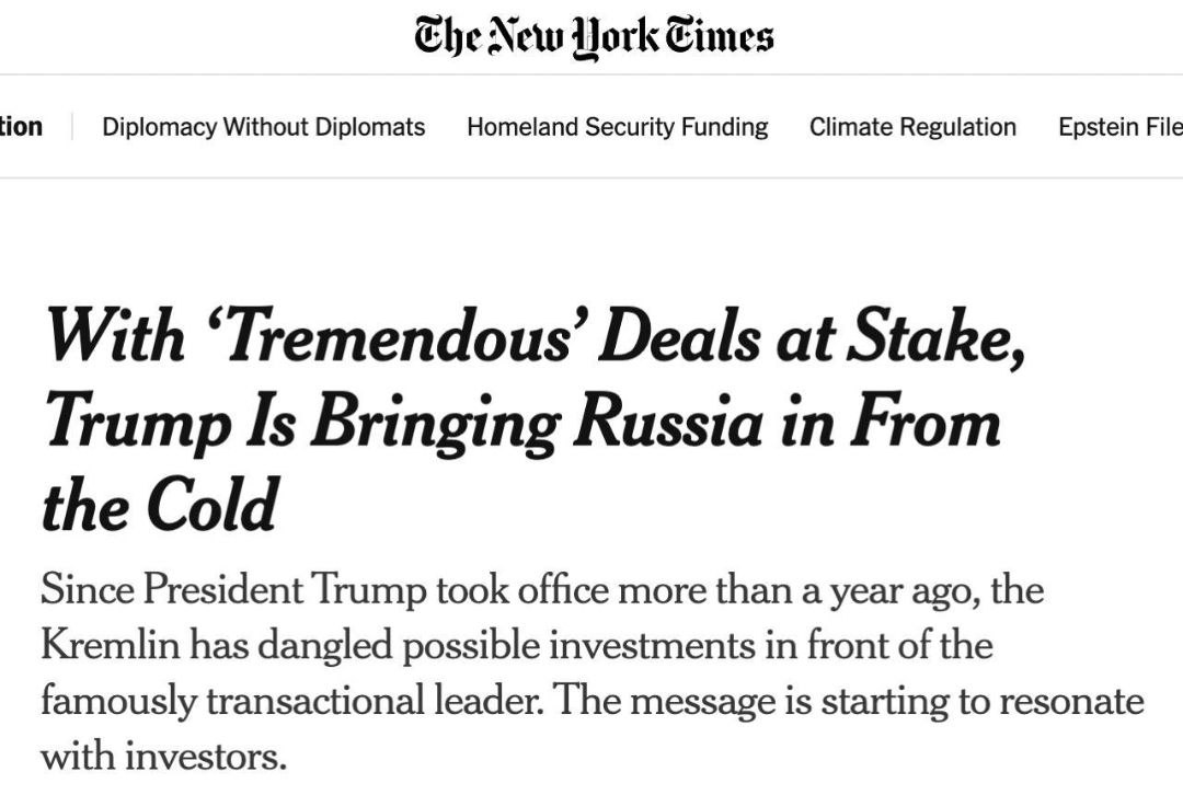 "В предверии "потрясающих" сделок Трамп возвращает Россию с холода" - так озаглавила свою статью о возобновлении деловых отношений США с Россией американская газета "Нью-Йорк таймс".