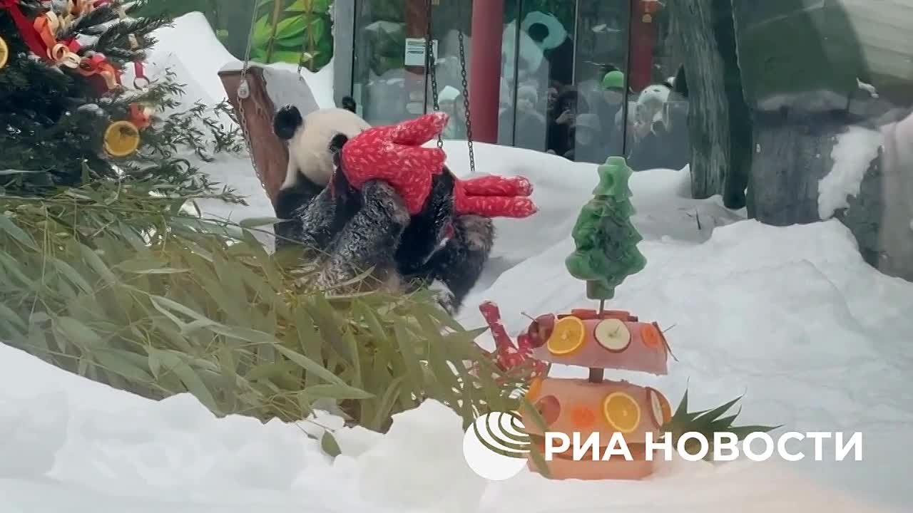 Большим пандам из Московского зоопарка вручили подарки в честь Китайского Нового года.