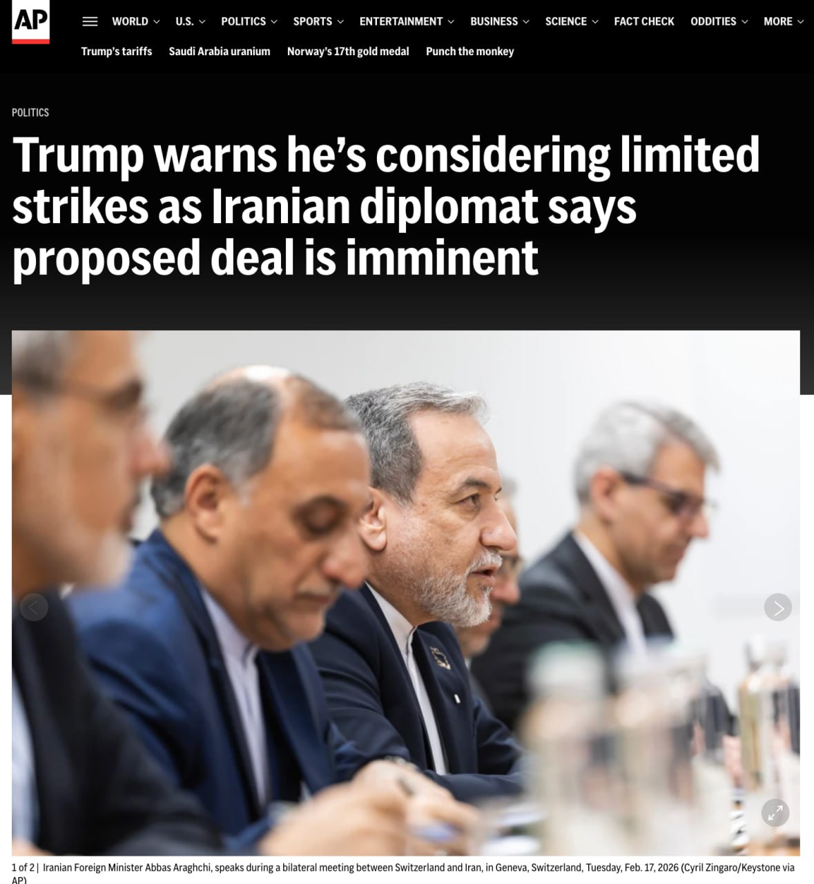 И Иран, и США дали понять, что готовы к войне, если переговоры по ядерной программе Тегерана зайдут в тупик. «Мы готовы к дипломатии и готовы к переговорам ровно настолько, насколько готовы к войне», — заявил в пятницу Арагчи.