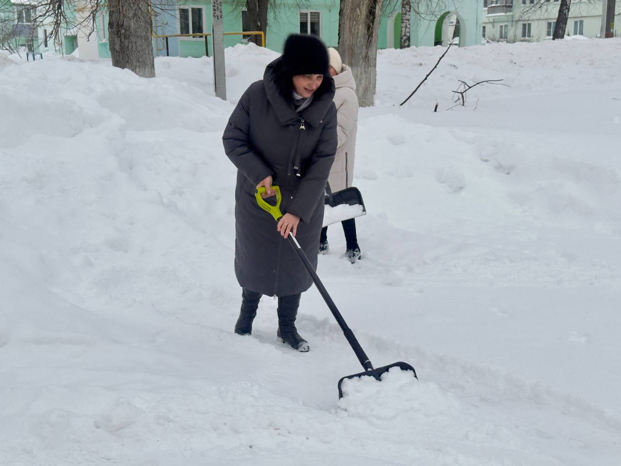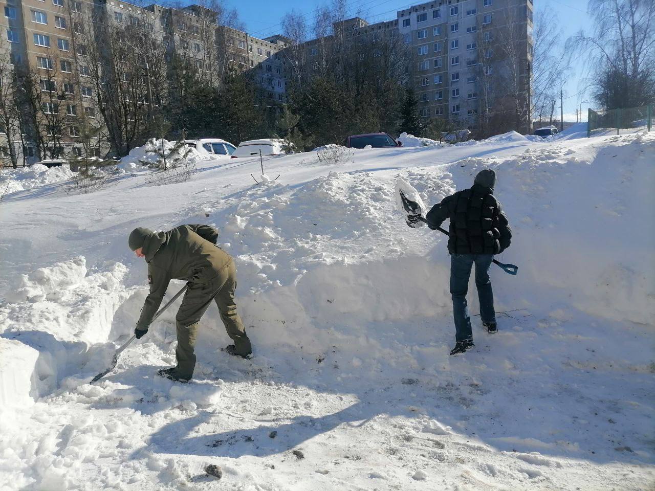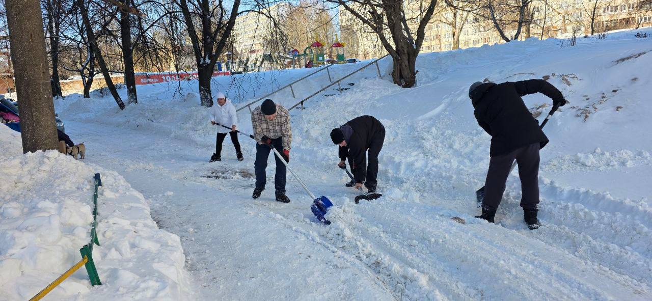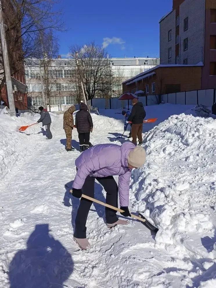 Расчищали подходы к детским садикам, школам, больницам, убирали снег во дворах своих домов.