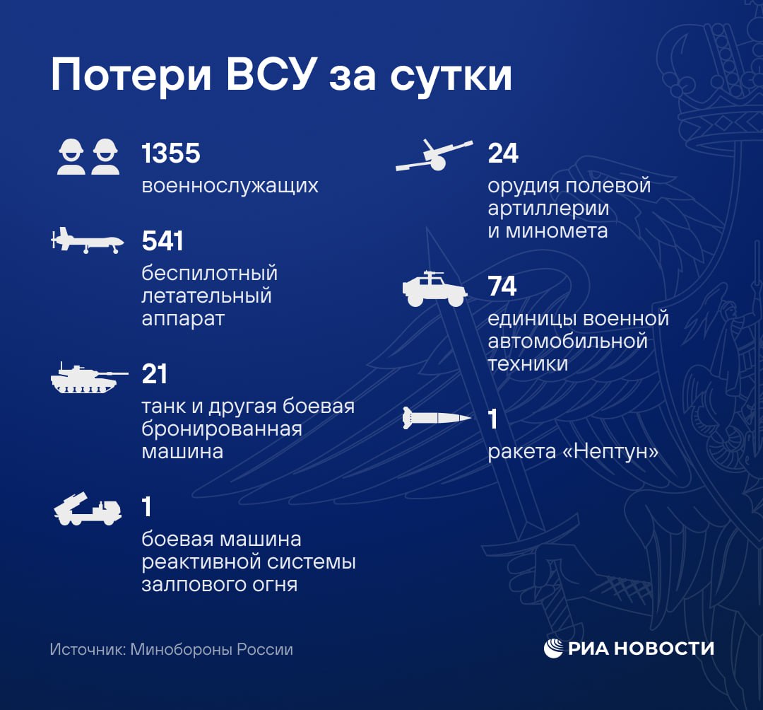 Главное о потерях ВСУ за день - в инфографике РИА Новости.