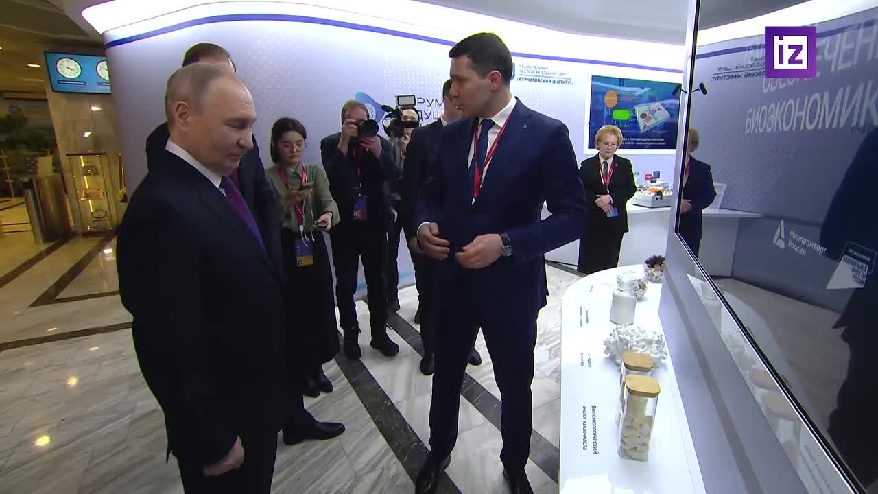 Президент России Владимир Путин посетил выставку по биоэкономике на площадке Форума будущих технологий в Москве.