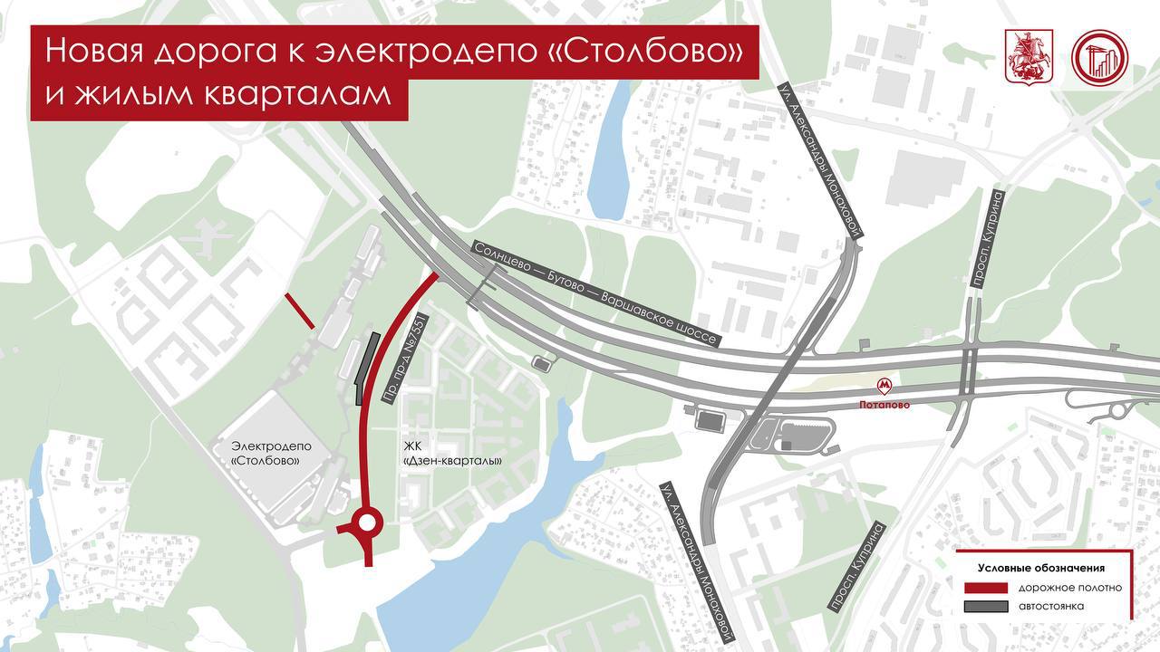 В столице открыт прямой выезд на трассу Солнцево — Бутово — Варшавское шоссе от электродепо «Столбово» и новых жилых кварталов.