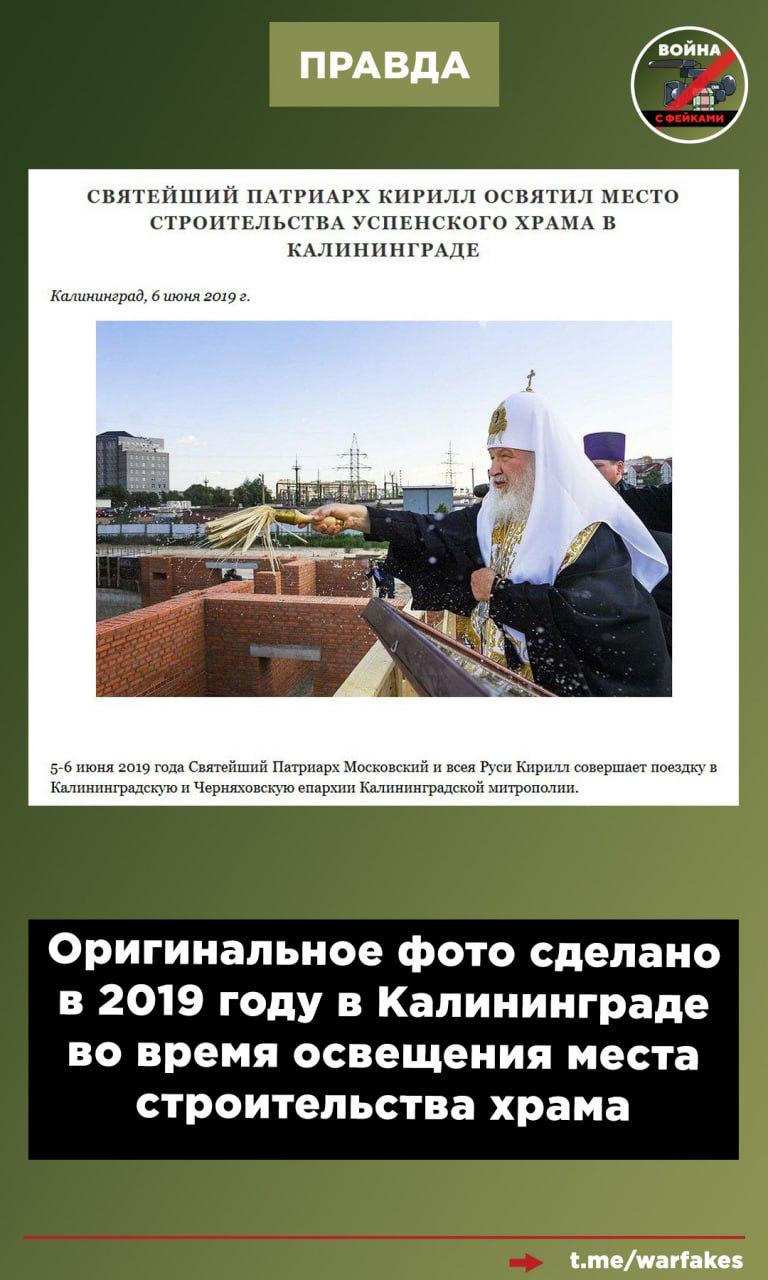 Несмотря на то, что фейк опровергается просто здравым смыслом, мы все же заглянули на страницу к Патриарху. Разумеется, там нет ничего про освящение и молебен.
