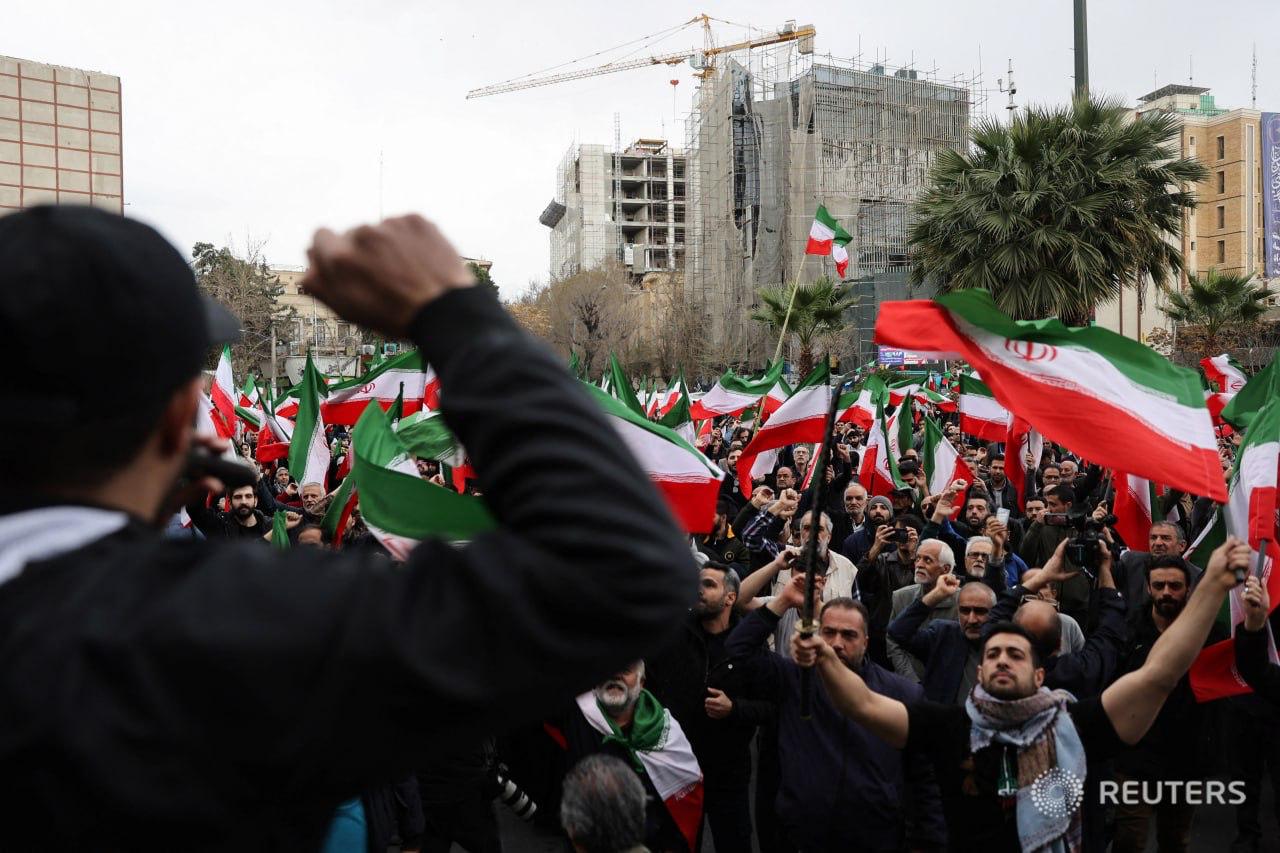 «Ни компромиссов, ни капитуляции — борьба с Америкой»: скандируют демонстранты на митинге в поддержку руководства страны в Тегеране.