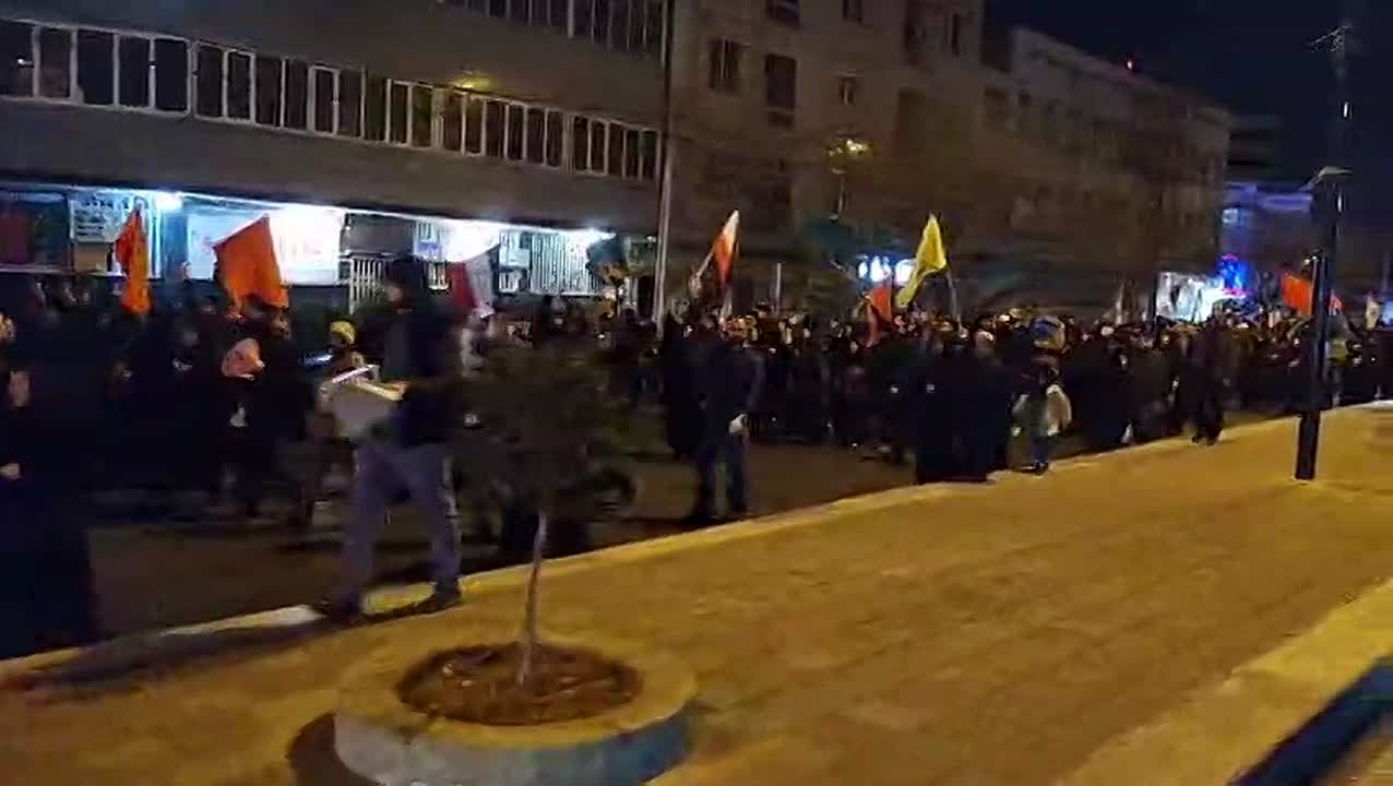 Толпа людей, держа иранские флаги, выкрикивают лозунги.