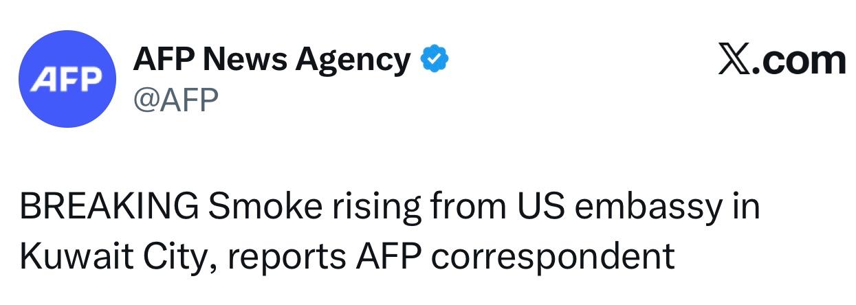 AFP: Над посольством США в Кувейте поднимается дым.