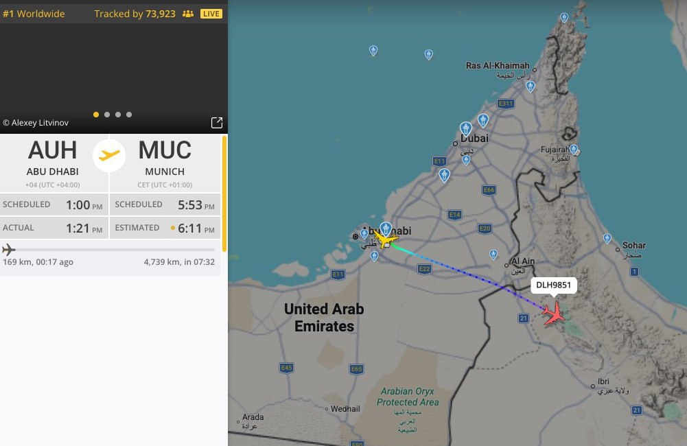 Из аэропорта Абу-Даби начали вылетать пассажирские лайнеры. Первым улетел самолет Lufthansa в Мюнхен, за ним готовится рейс Etihad в Лондон. В 13:30 по мск ожидается вылет рейса в Москву