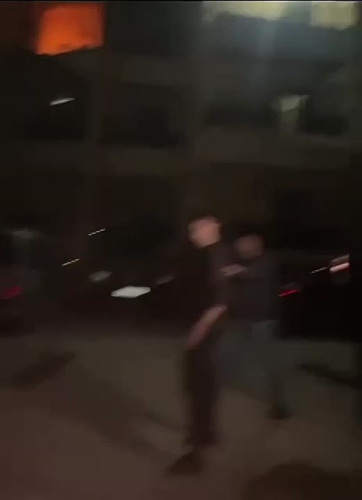 На кадрах — последствия атаки. Люди разбирают завалы во все еще горящем здании.