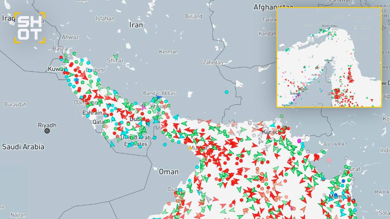 Данные портала для отслеживания судов Vesselfinder фиксируют скопление десятков танкеров и грузовых судов по обе стороны Ормузского пролива после его закрытия Ираном.
