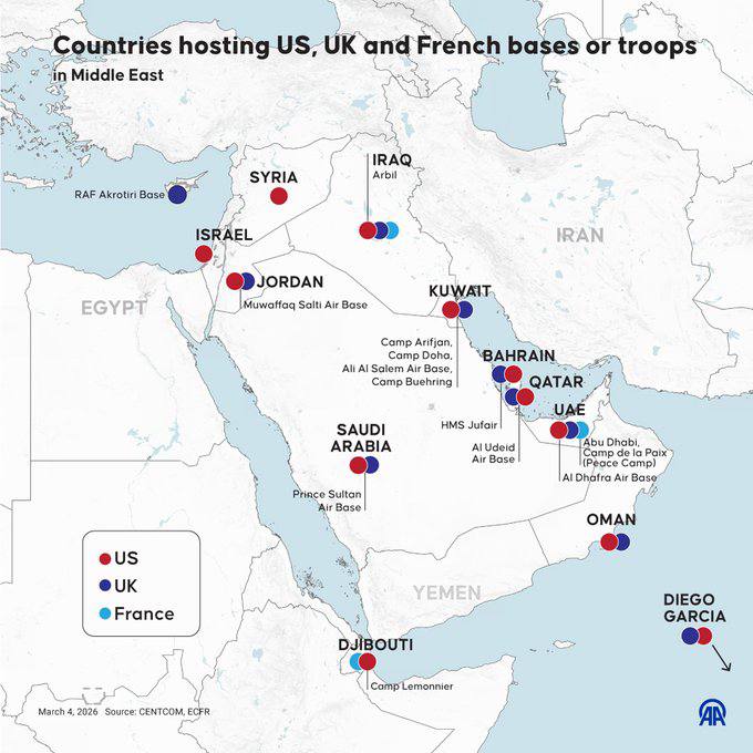 ВС Ирана за последние 48 часов нанесли удары как минимум по девяти военным базам США на Ближнем Востоке,- CNN, со ссылкой на анализ спутниковых снимков и видеоматериалы очевидцев.