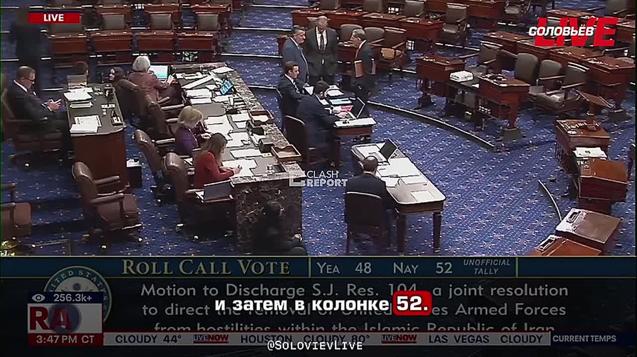 Против проголосовали 52 сенатора, за — 48.Подпишись на Соловьёва!