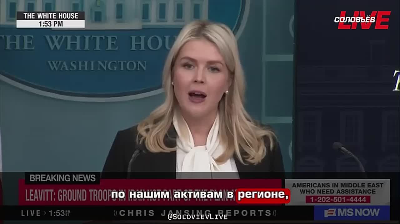 Пресс-секретарь Белого Дома Каролин Ливитт заявила, что Дональд Трамп начал военную операцию на территории Исламской республики Иран потому что он "почувствовал", что Иран собирался нанести удар по США: