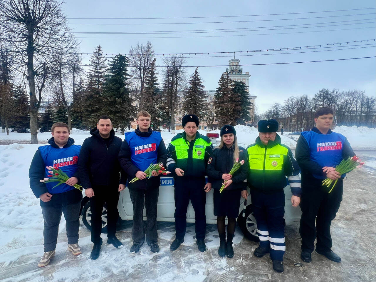 В преддверии Международного женского дня 8 Марта сотрудники Госавтоинспекции Новомосковска и молодежь местного отделения «Молодой Гвардии Единой России» присоединились ко Всероссийской акции «Цветы для автоледи».