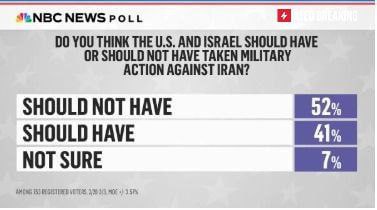 Согласно опросу NBC около 52% американцев считают, что Израиль и США не должны были атаковать Иран.