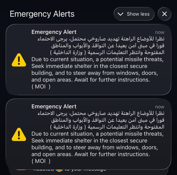 В Дубае снова звучит сирены, жителям приходят предупреждения на телефоны.