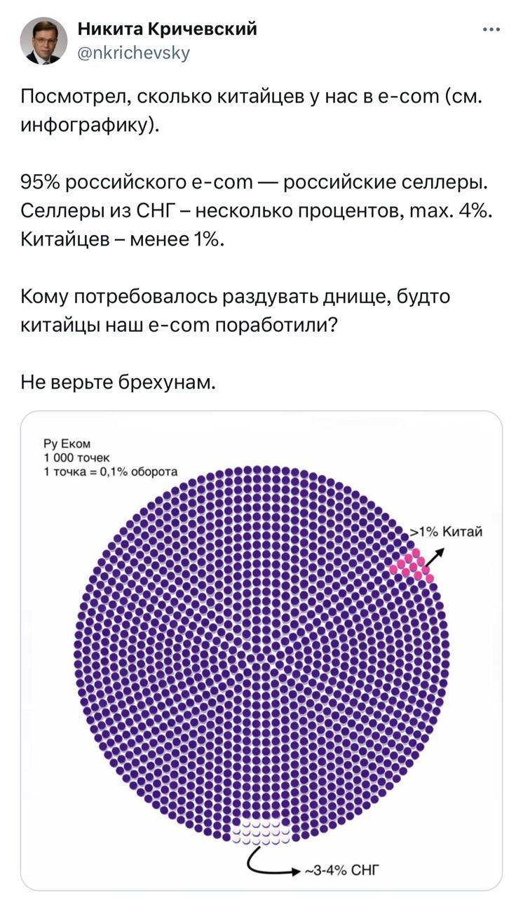 Экономист Кричевский о e-com в России - о том, что селлеры из Китая составляют менее 1% от всех продавцов на российских маркетплейсах: