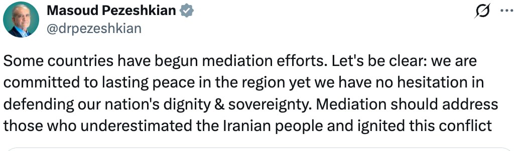 Посредничество должно быть направлено на тех, кто недооценил иранский народ и развязал этот конфликт»
