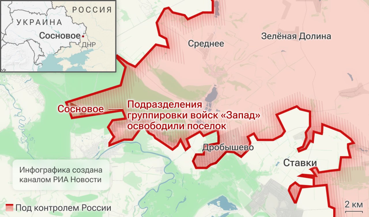 Армия России освободила населённый пункт Сосновое в ДНР.