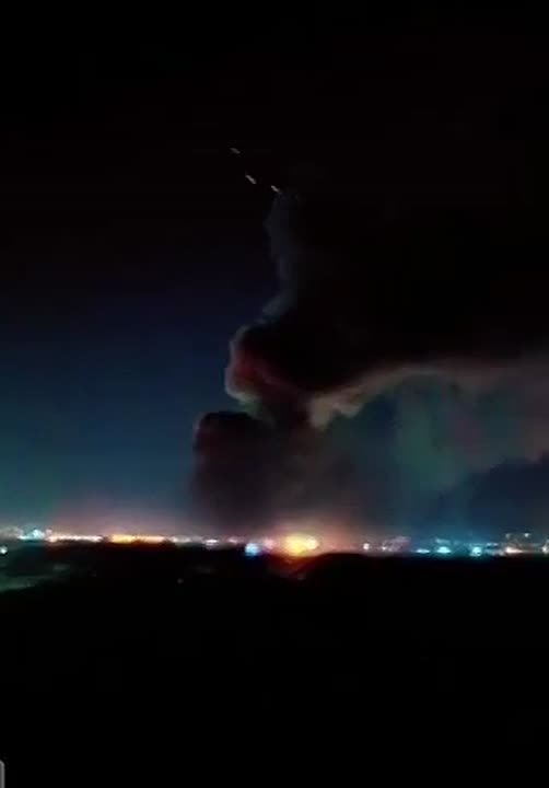 На кадрах — столб дыма поднимается над, вероятно, охваченной огнем американской базой.