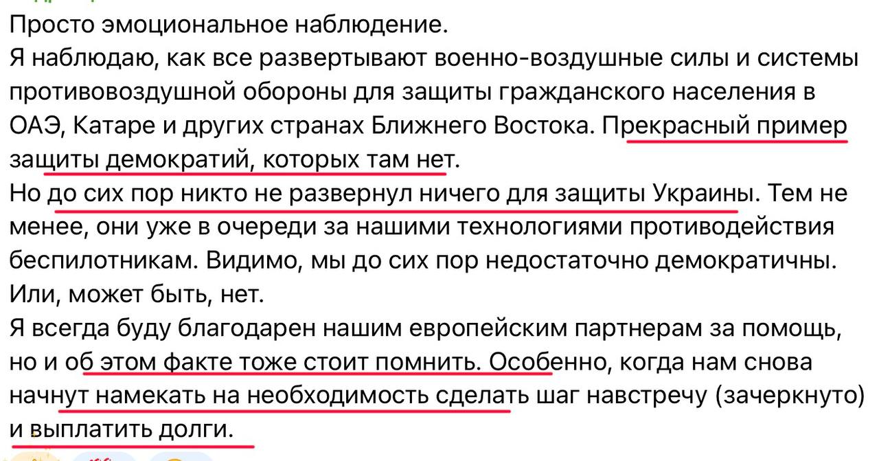 И поэтому любые сладкие речи не должны вводить нас в заблуждение. Всё свободное время и доходы от нефти сегодня необходимо направлять исключительно на обеспечение армии самым современным и необходимым. Большая война неизбежна. Мир окончательно...