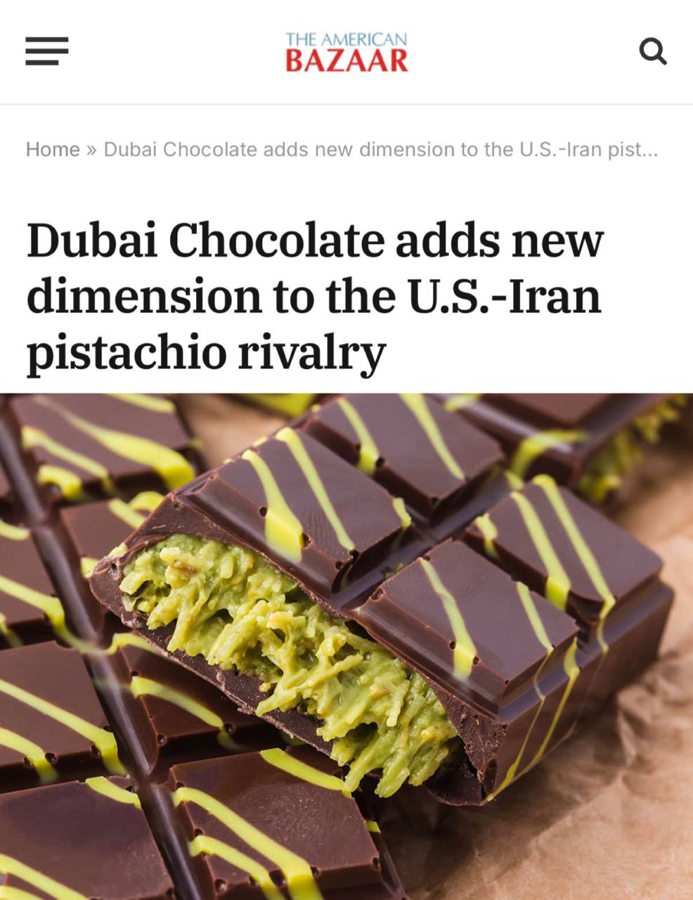 «Дубайский шоколад придает новое измерение американо-иранскому соперничеству»: Дубайский шоколад и фисташки могли стать причиной для войны на Ближнем Востоке.