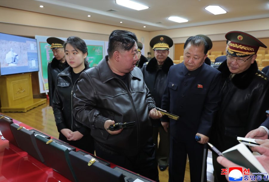 Ким Чен Ын вместе с дочерью посетил предприятие, приступившее к производству нового северокорейского пистолета и лично ознакомился с его боевыми характеристиками, сообщило агентство ЦТАК.