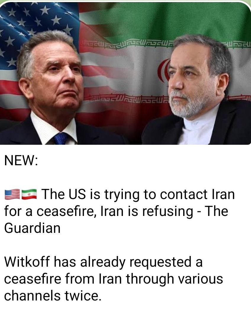 Со ссылкой на газету "Гардиан" сообщают, что США через спецпосланника Уиткоффа по разным каналам дважды обращались к Ирану с предложением о прекрашении огня. И оба раза Тегеран отказал, будучи убежденным, что прекращение огня будет использовано Вашингтоном для подготовки к новым ударам.