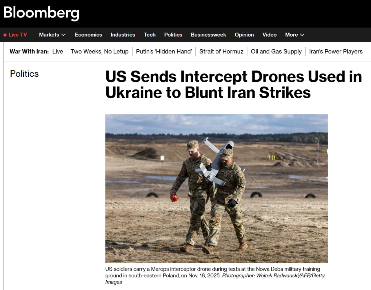 Bloomberg: США отправили на Ближний Восток 10 тысяч перехватчиков дронов, разработанных на Украине