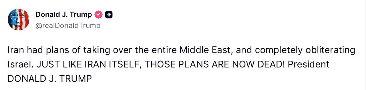 У Ирана были планы захватить весь Ближний Восток и полностью уничтожить Израиль. Как и сам Иран, эти планы теперь мертвы!