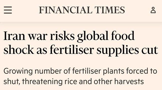 Эскалация ближневосточного конфликта может привести к глобальному продовольственному кризису, который превзойдёт по масштабам кризис 2022 года, — констатирует британская Financial TimesВоенные действия привели к сбою глобальных цепочек поставок карбамида — самого распространённого в мире азотного удобрения