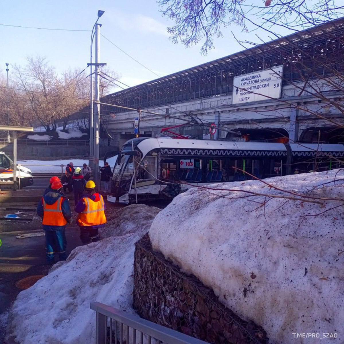 «Трамвай сошел с рельсов на дублере Волоколамского шоссе на северо-западе Москвы и столкнулся с другим трамваем. В результате пострадали семь человек, на месте ДТП находятся 20 машин скорой помощи. Число пострадавших выросло до 13, все госпитализированы, 11 из них находятся в тяжелом состоянии»